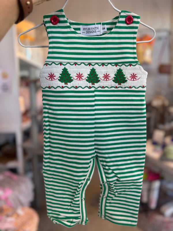 Striped Christmas Tree Romper - Boys